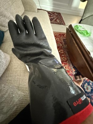 [This review was collected as part of a promotion.] Love these gloves! I’ll use this brand from now on. The rubber portion has a great grip and allows me To easily clean out our pellet grill when needed. Its protection with heat is fantastic and the fit is perfect. Inside the liner is super soft and comfortable.