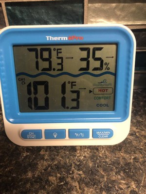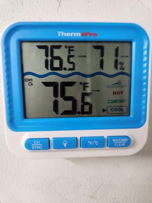 This ThermoPro wireless pool thermometer exceeded my expectations! The floating, waterproof transmitter works perfectly, even from a range of up to 500ft. It’s anti-fogging, ensuring accurate readings every time. The receiver is a game-changer, displaying not only the pool temperature but also the area’s temperature and humidity, whether indoors or outdoors. The backlight feature is ideal for night swimming, and switching between Fahrenheit and Celsius is seamless. Bonus points for the included batteries—it was ready to use right out of the box! The magnetic back is incredibly convenient for attaching the receiver anywhere, and I love that additional remote sensors can be purchased for larger areas. Highly recommend this reliable, versatile thermometer! Pardon the sink reading, we took our pool down for the winter. No fun swimming when it's 40 degrees outside!