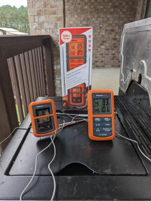 - Super Long 500ft Wireless Range: This wireless meat thermometer allows you to track your food and grill temperatures from a distance. The 2 probe BBQ thermometer comes already paired, so put the batteries in your smoker thermoemter and start your cook.