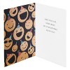 Yay for birthdays! This happy card features fun smiley faces with party hats and is accented with glitter foil. Both the pattern and foil continue on the inside of the card. This birthday card is perfect for anyone you want to celebrate and wish hugs, laughter, and smiles to. Envelope is included.
