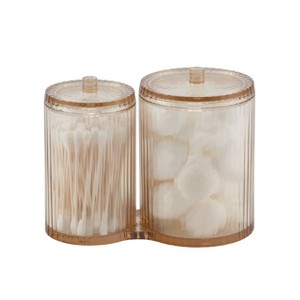 Bought this for my cotton rounds and q-tips (like shown). I'd prefer them if they were separated but still works just fine. I loved the color options and got mine in green. They look like vintage glass and seemed a good value for the price (maybe a little high).