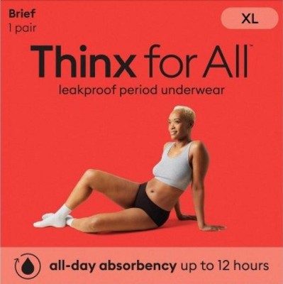 It’s time to leakproof your period. Thinx for All period underwear looks and feels like regular underwear, but it’s designed with built-in period protection that’s leakproof all day up to 12 hours. Thinx for All period underwear features an absorbent core layer that absorbs up to 12 regular tampons’ [KM3] worth of flow*, and the moisture-wicking layer helps keep you feeling fresh and dry. Made with breathable cotton, Thinx for All period panties let you go about your day in comfort. From the period experts at Thinx, Thinx For All can be a total replacement for disposable period products, or can be worn as a backup to tampons or menstrual cups. Thinx for All period panties are washable and reusable. Machine wash your Thinx period underwear on cold, line dry, and repeat! Not for use on open cuts, abrasions or incisions. Replace at 30 washes. (*Individual Results May Vary)
