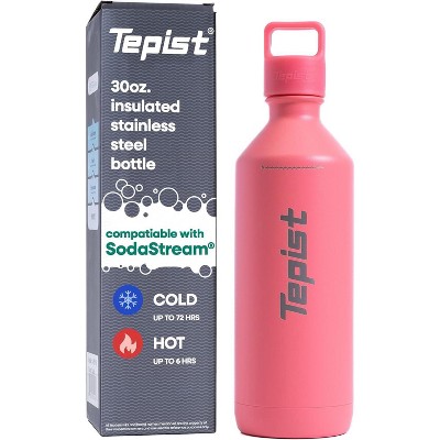 Thirty0 30 oz Stainless Steel Reusable Bottle Compatible with Sodastream Machines - Tepist: Double Walled, Vacuum Sealed, White