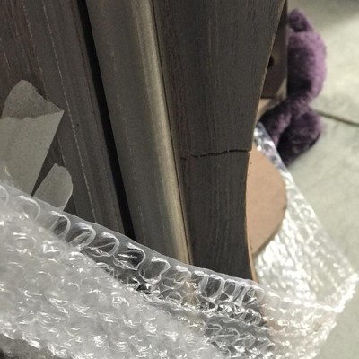 - Light gray washed wood finish complements any décor