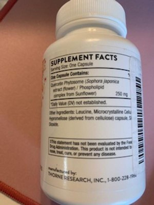 Thorne supplements and vitamins are top of the line. Excellent ingredients, no fillers. This particular one reduces allergies greatly! I can’t recommend this Thorne Quercetin Phytosome enough! You’ll feel more like yourself after trying this-especially if you have severe allergies.