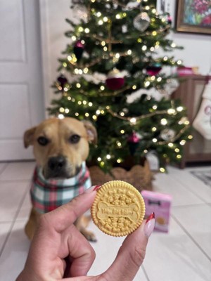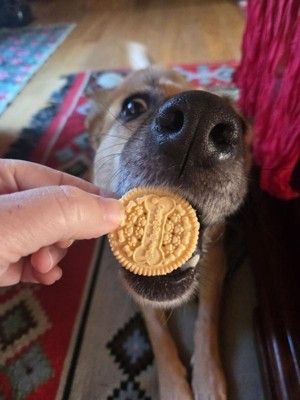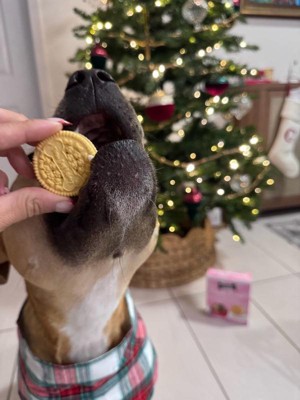 [This review was collected as part of a promotion.] they are seriously the cutest holiday doggie must have! The crunchy sandwich cookie outside is perfect, and the vanilla crème filling mixed with peppermint candy cane pieces gives total winter wonderland vibes. The ingredients are super simple too enriched wheat flour, sugar, vegetable oil, natural vanilla and peppermint flavor, plus natural plant based color, so you can feel good about treating your pups. Indy and Chance really enjoyed these treats!