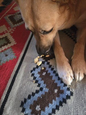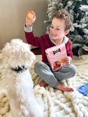 My dog loves these! The kids even tried them because kids are silly. They smell really nice, no icky meaty dog treat smell. They’re a nice little crispy festive treat for the kids to include puppy in holiday treat time.