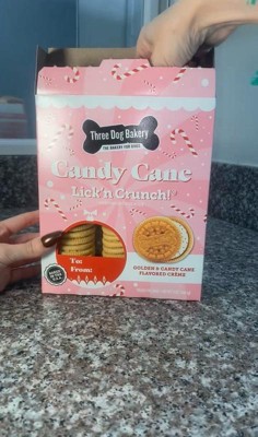 [This review was collected as part of a promotion.] With the holidays coming up, threedogbakery has the perfect stocking stuffers for your fur baby's ☺️ Rex ABSOLUTELY LOVES their candycane lick n crunch "cookies" when I tell you these smell EXACTLY like a real vanilla peppermint cookie I MEAN IT! The urge to try them myself hasn't won yet, but man does it smell good lol made with completely safe ingredients for your fur baby that they love. We love these cookies for a special treat. You can grab these, and many other flavors @walmart @target and most major grocery stores.
