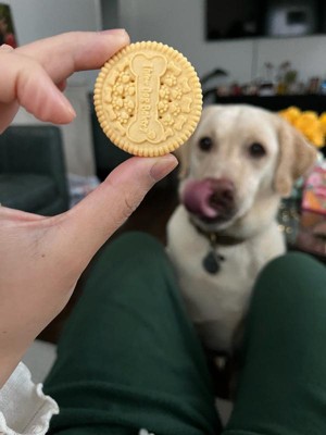 [This review was collected as part of a promotion.] Our dog absolutely loves these treats! She devours them and definitely gets so excited when we pull these out. They are the absolute cutest, looking like oreos for dogs! They’re a great size too, and not too large or small.