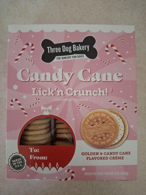 Three Dog Bakery Candy Cane Lick'n Crunchy Dog Treat with Peppermint & Vanilla Flavor - 13oz