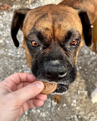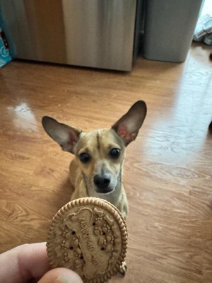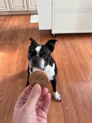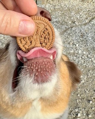 [This review was collected as part of a promotion.] Wow! These cookies from Three Dogs Bakery are scrumptious - they smell good enough for me to eat, they look adorable, and Millie gives them two [thumbs] paws up! The box is adorable and they come in Oreo-like sleeves. She gobbles them right up! @influenster @threedogbakery #complimentary #threedogbakery