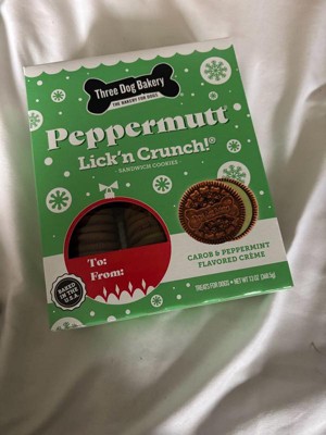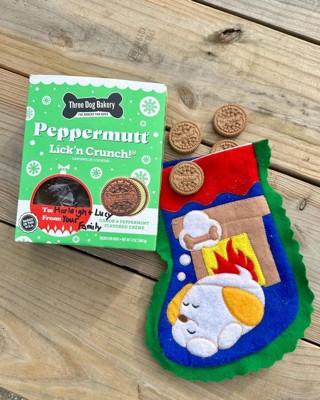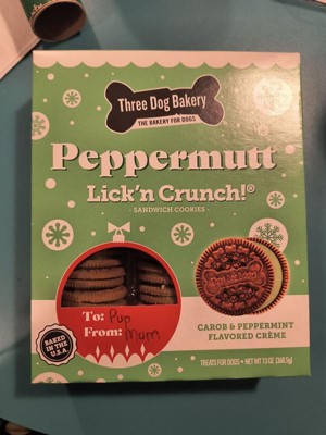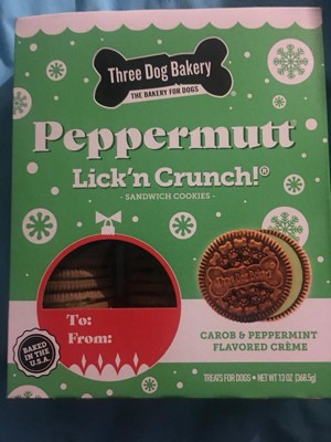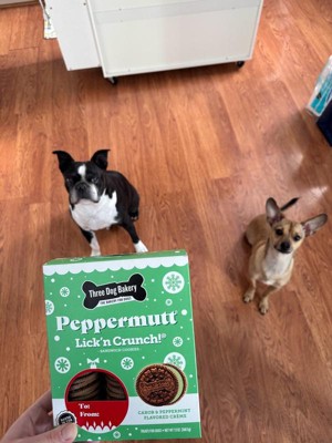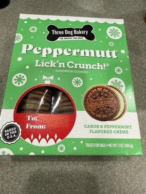 Three Dog Bakery Holiday Peppermutt with Peppermint and Carob Flavor Creme Lick'n Crunchy Dog Treats - 13oz