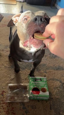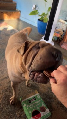 [This review was collected as part of a promotion.] We just love the Three Dog Bakery items. These mint chocolate cookies are perfect for the holidays. Mint center sandwiched between Chocolate wafers. They smell so good that they make you forget they are for my pets. Dogs approved for sure