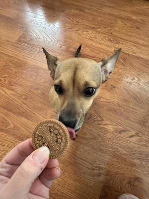 [This review was collected as part of a promotion.] So my dogs loved these treats. They definitely look like oreos so you have to watch if you have little ones around. The treats was fresh and nice size for our dogs. I like the packaging it was easy to get into and also easy to read.