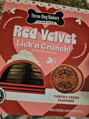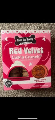 [This review was collected as part of a promotion.] My dogs absolutely devoured this Red Velvet Lick'n Crunch! The combination of the creamy frosting and crunchy center had them licking their chops for more. It was a real treat and a fun way to spoil them both. I love that Three Dog Bakery uses high-quality ingredients, and I felt good giving this to my furry friends.