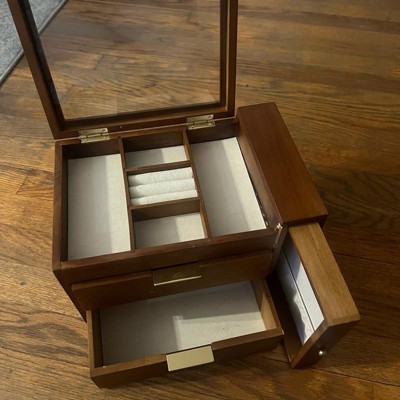 A: This jewelry organizer features three drawers for ample storage of various accessories.