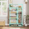 - [ More Thoughtful Designs ] - The bottom space of shoe cabinet can hold slippers or a sweeping robot and the 360° adjustable metal legs make the cabinet stable even on uneven floors. The top fence keeps items like plants, ornaments, socks, and keys safe from falling. The hooks on both sides can be used to store umbrellas(Please note not to hang heavy objects such as bags). The unique silent cotton design ensures no noise when opening and closing the cabinet doors.
