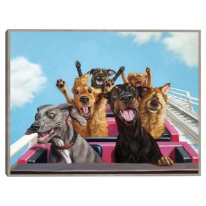 Get ready for a wild ride with this whimsical canvas print of six dogs on a rollercoaster. This charming piece captures the joy and energy of our furry friends, adding fun and personality to any space. A must-have for dog lovers and anyone who loves a good adventure! Printed on only top-quality canvas with first-rate technology, every brushstroke is distinctive and defined. Plus, with printing that covers the expanse of the canvas, framing is unnecessary and hanging your new artwork is a cinch