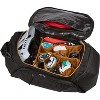 The Thule RoundTrip Bike Duffel is the ultimate bike gear locker for dedicated cyclists. Designed with structured organization, mountain bikers and road bikers alike are able to keep a bag packed and ready with every last piece of gear. Simply swap out fresh wearables while keeping the bag in the trunk of your vehicle to easily access at the trailhead. Purpose-built storage includes individual cell pockets for coordinating kits, jackets and accessories. A dedicated helmet compartment comfortably fits any size road or trail helmet. Tarpaulin lined zippered pockets store shoes and dirty clothing to protect clean clothing from wet or muddy gear. The cycling gear bag is built for quick access with a structured design and wide opening for high visibility and efficient access to all gear. A front pocket keeps nutrition and tools separate from other gear. This race day bag also includes a removable shoulder strap makes it easy to transport from car to hotel or around the race venue.