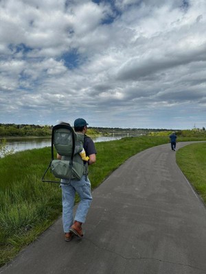 My husband and I have loved going on hikes together for years and years, then we had our little one and thought our hiking days were behind us for awhile…not with this! This carrier has been awesome! We used it last summer and fall on many hikes and it worked perfectly-uphill, downhill, 5 miles, 10 miles (haven’t tried it for more yet but plan to). I usually carry our little one (figure it’d also help me kick some of that baby weight) and have no issues. It’s a workout of course but Ive found this to be a very comfortable carrier. It’s super light and easy to toss into a trunk and it’s got very ample storage space. It fits all my and babys essentials as well as our lunchbox and my camelbak. It even has the loops/straps in the right places on the backpack straps for camelbaks/water pack hoses which I love! It gives little ones a great vantage point during hikes and it’s definitely a conversation starter when you run into other hikers on the trails! People couldn’t help but smile and/or say hi. Our little one loves being in this, coos and babbles happily the whole time. We’ve only used it for 2 seasons so far but I can’t wait to break it out again when the weather warms up a little soon! Definitely recommend this, it is one of my favorite baby item purchases for sure. Another winning item from Thule!
