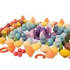 TickiT Wooden Treasures Starter Set | This set includes 168 smooth beechwood pieces in 14 shapes. Each shape comes in 3 shades of 7 colors. Use these pieces during loose-parts, open-ended and small-world play. Or, practice early math concepts like counting, sorting and sequencing. They’re a great resource for fine motor development and color recognition. These chunky beechwood pieces are the perfect size for small hands. And all the pieces are lightly stained to preserve the wood’s natural grain. They’re designed to last for years of use. Use the cotton drawstring bag for easy storage and portability. For ages 3+. Sizes: 1.4"W - 1.6"W.