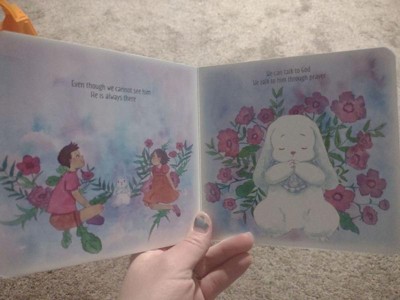 [This review was collected as part of a promotion.] This product comes with a board book and a plush bunny that has a recording of a prayer in it when you press its tummy. The book is really cute; has beautiful, watercolor pictures, and tells a story about God and praying. Then, the prayer that they teach in the last part of the book is the one recited when you press on the bunny‘s tummy. Overall, I think it is a good product, but I do wish that the bunny and book were bigger (as you can see in the photos they are both about the size of my hand). It’s a good small present option for Easter or a baptism.