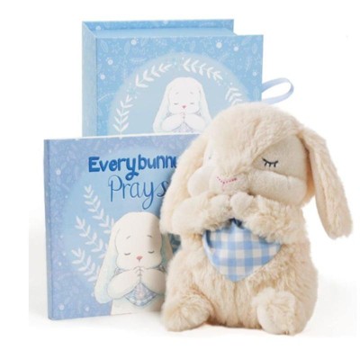 Tickle & Main Everybunny Prays, Baby and Toddler Gift Set - Blue, Praying Musical Bunny and Prayer Book in Box for Boys