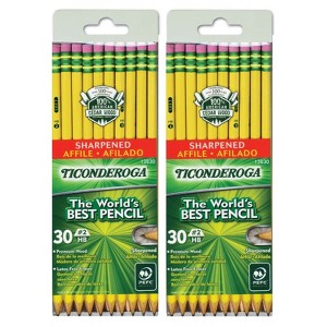 The Ticonderoga is the world's best pencil. Satin smooth finish enhances writing comfort. Exclusive graphite core formula gives you extra smooth performance. Crafted with premium wood from well managed forests. Top quality, latex-free eraser provides easy, clean corrections. PMA certified non-toxic. Each pack includes 30 pencils. Sold as a set of 2 packs, 60 pencils total.