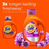 Get the Tide clean you trust and the all-day Febreze freshness you want-all in one with Tide Ultra Febreze Liquid Laundry Detergent, Spring and Renewal. Tide Ultra Febreze provides long lasting freshness that helps your fabrics stay fresh up to 3x longer*. Tide's liquid laundry detergent gives you bursts of freshness, that last from day to night. Unlike leading baking soda-based detergent brands, Tide's laundry detergent liquid gets you 2x the cleaning ingredients in every wash. The clear cap makes measuring and pouring your liquid laundry detergent incredibly convenient. And if you want to upgrade your routine even more, pair with Downy Rinse Out Odor Fabric Rinse and Downy Unstopables Fabric Scent Booster Beads.