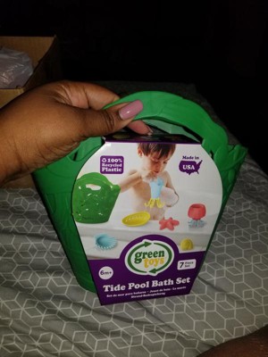 [This review was collected as part of a promotion.] I love the fact that is has so many pieces with a storage basket so even if the kids take a bath together everyone can have a toy to play with. Another fact is that these toys are made out of 100% recycled plastic containers wow who would of thought of that I think that is an awesome way to go green an save on using harmful products. Also everything has holes in it is a good way to keep things dry because let's face it time is not always on our sides an we sometimes forget to take the toys out of the tub but with these it's super easy to no have standing water around the toys causing bacteria buildup. My son enjoyed the tub toys he loves the pouring of the jellyfish & squid his sister enjoys the showr flow of the starfish and scallop my favorite part was seeing them play together an get clean while doing it..