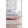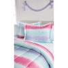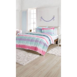 Inspired by every child’s favorite tie dye shirt. We designed this Tie Dye Stripe comforter set to be comfortable and fun like the t- shirt they love to live in! The face of the comforter and coordinating sham features a horizontal printed stripe pattern. The tie dye stripe is pink, aqua, purple, and white. The reverse is a solid pink. Let your child rest on this bedding set composed of 100% microfiber. Your child will love the softness of microfiber and you will love how easy it is to care for this fabric. Bring ultimate comfort to your child’s bedroom in a full or twin set.