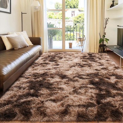 Tie-Dyed Gray Shag Area Rug, Ultra Soft 1.7" Plush, Non-Slip, 100% Polyester for Bedroom or Living Room Tie-dyed brown 96x120 inch