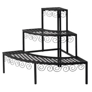 Designed with a stunning scrollwork pattern, this plant stand enhances the aesthetic of your entryway, porch, patio, or deck, creating a striking backdrop for your favorite plants. Constructed from durable tubular steel and finished with a black powder coat, it is built to withstand both indoor and outdoor elements.