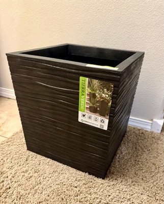 Dress up your entryway, patio, deck, or any outdoor living space with the Tierra Verde 14-Inch Citadel Serenity Self-Watering Medium Square Planter in Black.