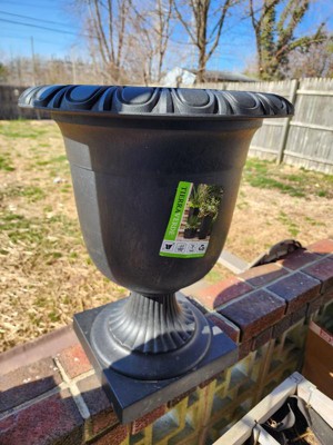 [This review was collected as part of a promotion.] I got this product to try and write an honest review about it and it is a great product. The plastic is a great quality and durable. The size of the planter is perfect for your outdoor or indoor plants. The design on the plastic makes it look classy and will go with any type of decor. The weight of the planter is sturdy by itself so it won't blow over and can hold a small tree easily. This planter urn is a must have to add to your plant decor.