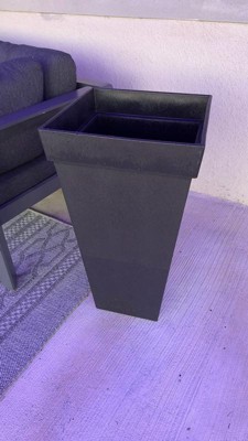 [This review was collected as part of a promotion.] This 28-inch tall black planter is a great addition to any indoor or outdoor space. The sleek, modern tapered design gives it a clean and elegant look that instantly upgrades patios, entryways, living rooms, or office corners. The matte black finish blends easily with any décor style and makes plants stand out beautifully. The planter is lightweight when empty, making it easy to move and position, yet it feels sturdy and durable once in place. The material appears weather-resistant, suitable for outdoor use in sun or rain without fading or cracking. Perfect for tall plants like snake plants, palms, ficus, or even seasonal flowers. It doesn’t come with drainage holes, so you may want to drill your own if using real plants. Because of its height, I recommend adding filler materials at the bottom to save soil and improve drainage. Overall, this planter looks high-end without the high price. It’s stylish, versatile, and a great way to add height and greenery to your space. Highly recommend!
