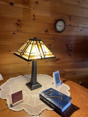 Tiffany Style Table Lamp-Mission Design Art Glass (Includes LED Light Bulb) Black: Stained Glass Desk Task Lamp, Metal Base, Inline Switch