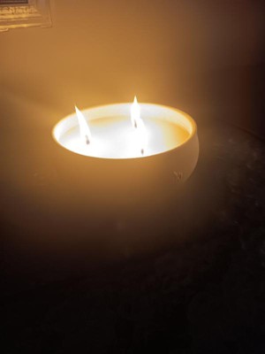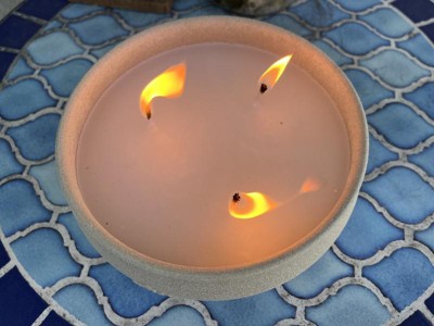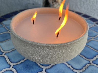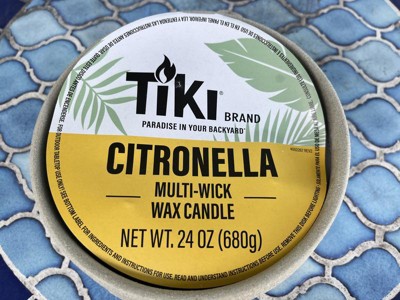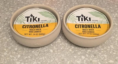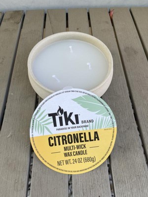 [This review was collected as part of a promotion.] I got the Tiki Citronella Multi-wick wax candles to use in my backyard, this summer to help with our mosquito population. I love the look of the round stone-like bowls. The pack I got has two 3-wick candles in it. The candles are a great size to hold the 3 wicks. The bowl is a rough texture that feels like concrete/sand. I will be keeping the bowls to use outside once the candles are burned through. The wax is a light cream color. The candles have a nice light citronella, smell, and produce a bit of smoke to help keep mosquitoes and other insects out of the immediate area. I've had good success with using both of them at the same time.On my patio, and sitting a few feet between them. I will be repurchasing these in the future.