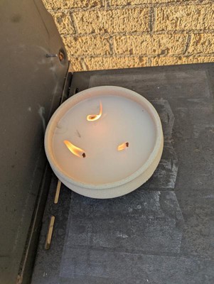 [This review was collected as part of a promotion.] I love these citronella candles. They burn evenly and the ceramic concrete bowls are an added bonus. They are a bit heavy which helps if a gust a wind comes around. I was surprised at the size, love them. My BF was outside fixing the lawn mower and I thought this would be great to keep mosquitoes away. It worked as it should, he had no problems with the pests.