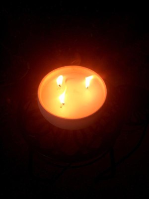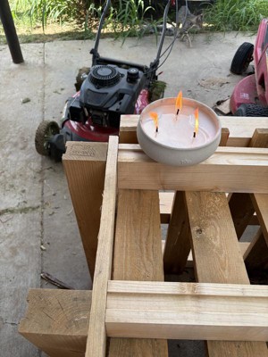 [This review was collected as part of a promotion.] I used this candle outside by my grill. The bugs where I live are HORRENDOUS this year and I can't step outside without getting bit, let alone do anything outdoors. This sucked changed that. The candle is HUGE, 3 wicks and a heavy base of citronella beast mode. The holder is some sort of concrete magic that didn't even budge through high winds or grill bumps, both of which there were a lot of.