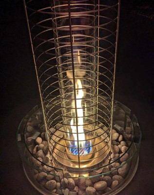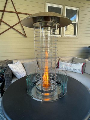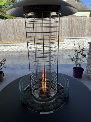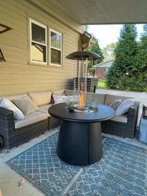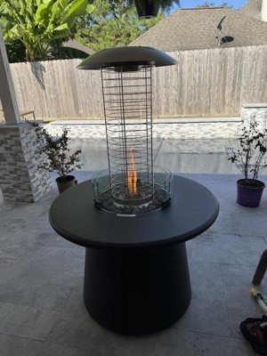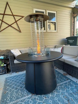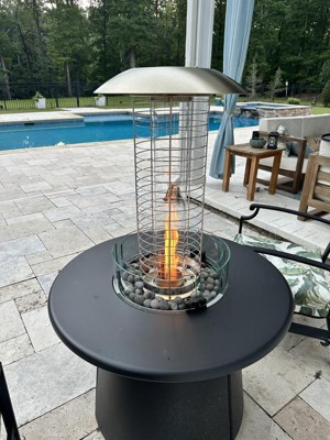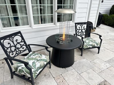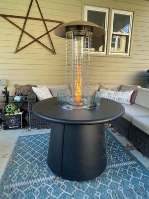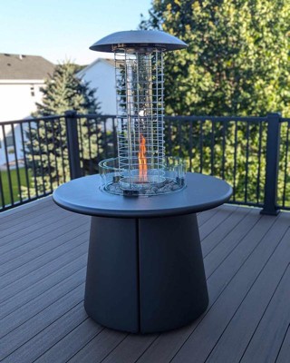 The propane heater attachment is a must for cold nights. It gives off lots of heat and looks beautiful while doing it! The attachment only took me about ten or so minutes to assemble and no tools were required. I love how versatile and elegant it is. The fire table with the propane heater attachment is perfect for our outdoor space and we use it regularly.