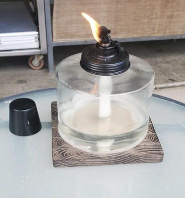 [This review was collected as part of a promotion.] This is one of the most stylish torches I've had yet. The glass feature makes it seem more extravagant. Being able to adjust the flame to your occasion and it's so easy to fill then light. Cap on top to help put it out n keep water out if it's in the rain. We haven't left in rain at this point but it usually sits on my table outside where we like to enjoy our evening fires. Great and effective torch fuel tops the whole thing off great! Planning to buy a couple more.