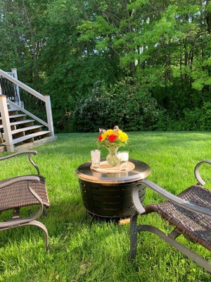 [This review was collected as part of a promotion.] We love our new tabletop! What a wonderful concept, makes the fire pit useful when we don’t have a fire going. Great for drinks or a meal outside. Love it.