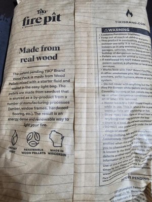 The TIKI Brand® Wood Pack is simple, instant, and predictable. Simply light with one match and create a low smoke flame in 5 minutes with a predictable burn time of approximately 30 minutes when used in a TIKI Brand® fire pit. When the fire starts to die down, add another wood pack or traditional firewood to extend your fire. The real wood pellets are upcycled and sourced locally in Wisconsin.