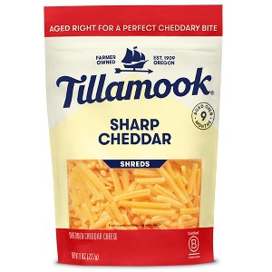 - One 8 oz bag of Tillamook Sharp Cheddar Shredded Cheese, naturally aged cheese