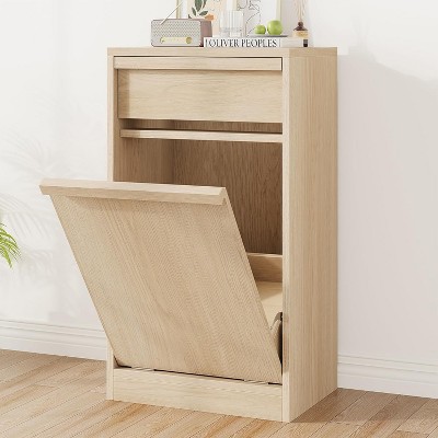 Tilt Out Trash Cabinet, 20 Gallon Kitchen Waste Bins, 2 Door Wood Free Standing Trash Storage Cabinet,White
