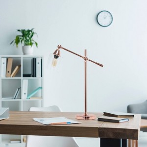 Practical and elegantly designed, this 28" desk lamp can move up and down to the exact height in your home OR office to properly lighten up your space! The base of the lamp is smoothly finished and paired with a clear glass shade to optimize the light output you seek. Available in a variety of finish options, you're sure to find the complimenting piece for your living room, office, or bedroom.
