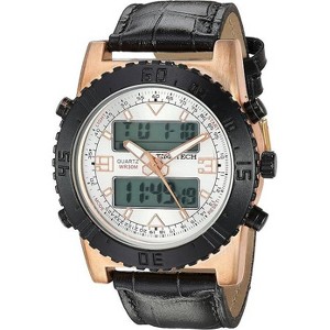 TIMETECH Men's Analog/Digital Multi-Function Weekend Sport Watch with Leather Band, Black