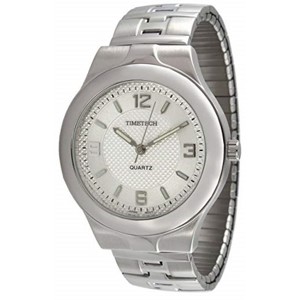 TIMETECH Men's Silver Textured Dial with Stainless Steel Expansion Bracelet Watch
