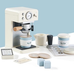 Tiny Land® Wooden Café Play Set for Kids, 19-Pcs Coffee Maker Set, Play Kitchen Accessories